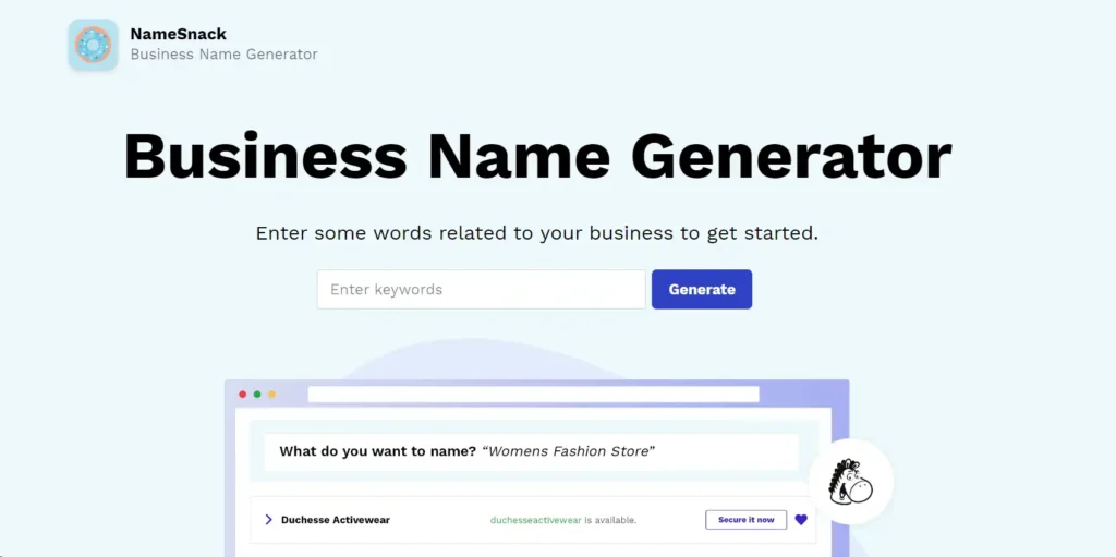 For aspiring entrepreneurs, NameSnack is a free business name generator. Simply enter keywords related to your business idea, and the tool will: