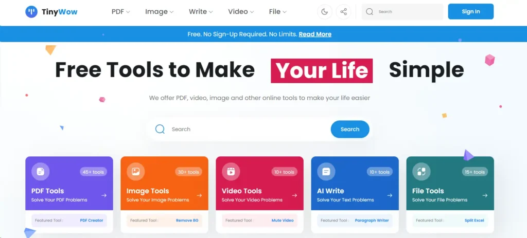 Tiny Wow offers a collection of easy-to-use online tools for various tasks such as: