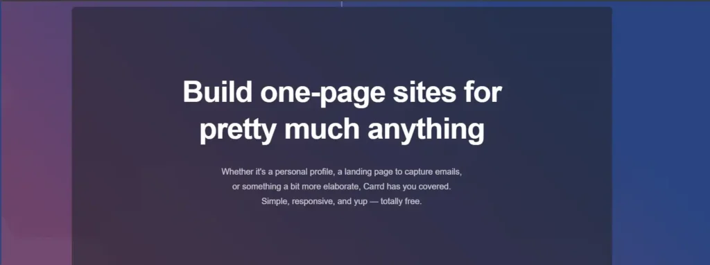 Carrd is a user-friendly platform for creating one-page websites. It’s particularly useful for: