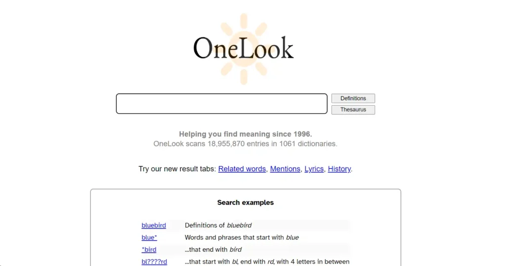 OneLook Thesaurus: A Reverse Dictionary