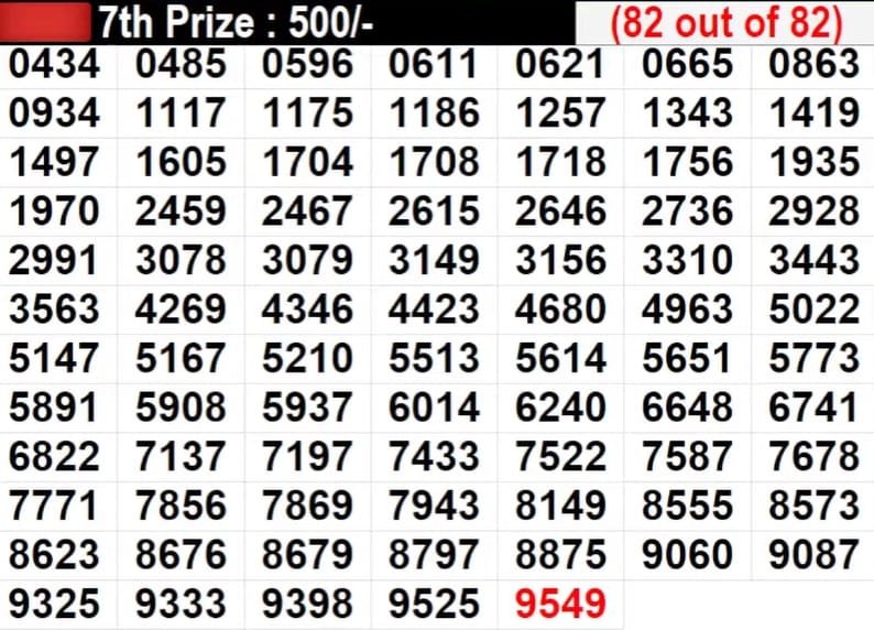 WINNING NUMBERS FOR 7TH PRIZE WORTH RS 500 ARE