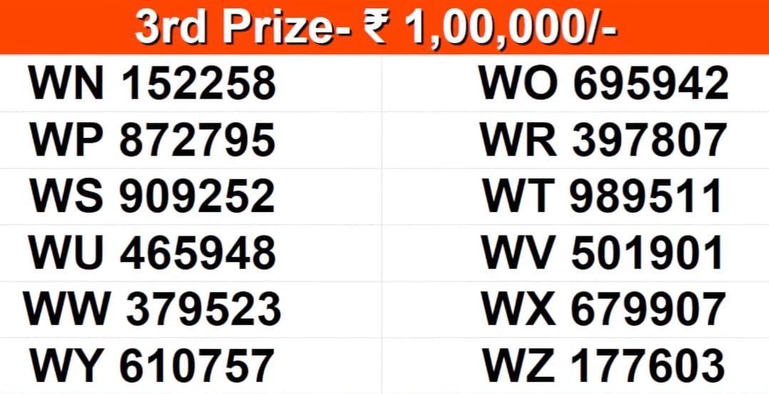WINNING NUMBER FOR 3RD PRIZE WORTH RS 1 LAKH ARE