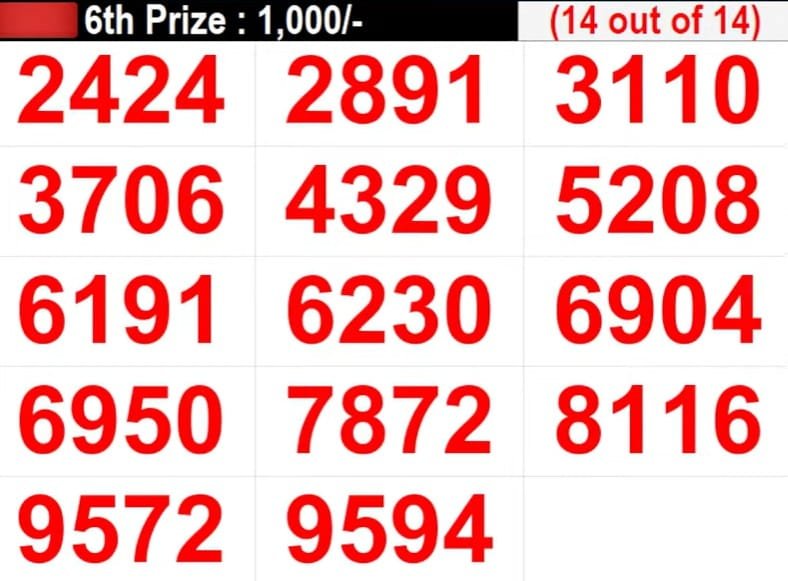 WINNING NUMBERS FOR 6TH PRIZE WORTH RS 1,000 ARE