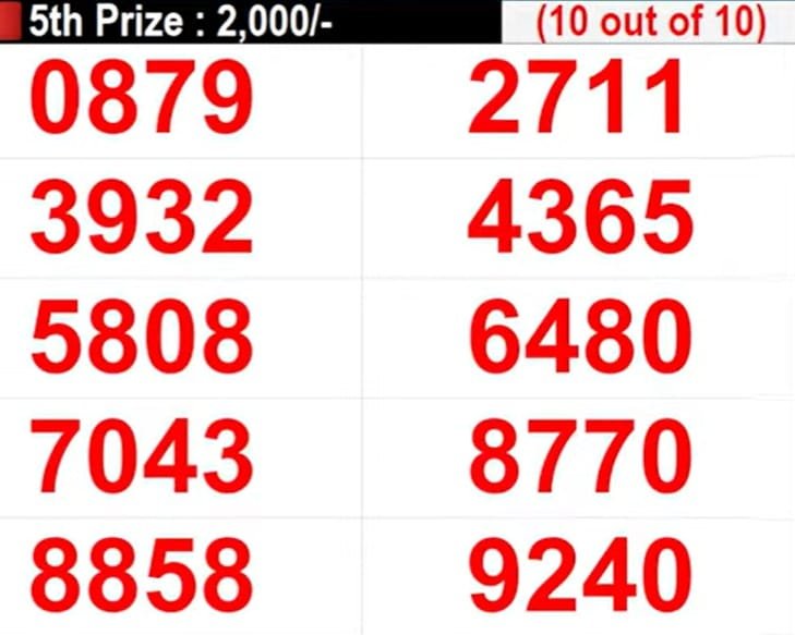 WINNING NUMBERS FOR 5TH PRIZE WORTH RS 2,000 ARE