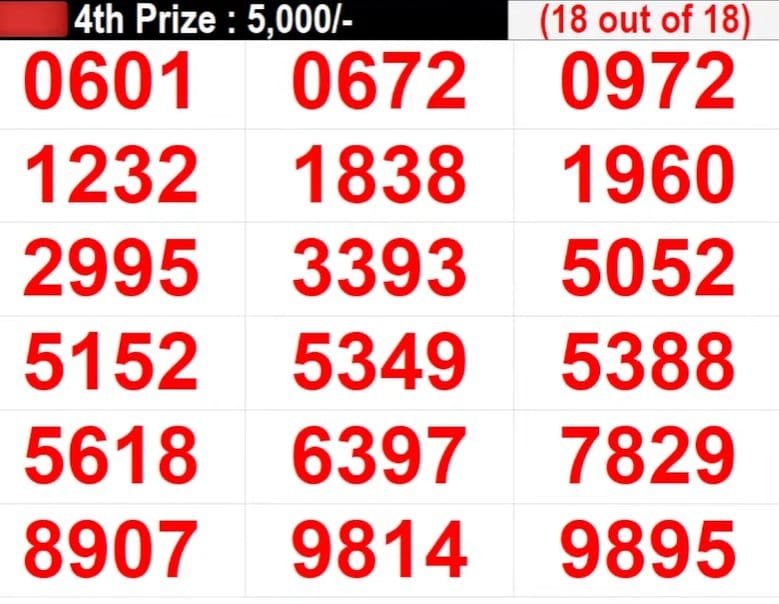 WINNING NUMBERS FOR 4TH PRIZE WORTH RS 5,000 ARE